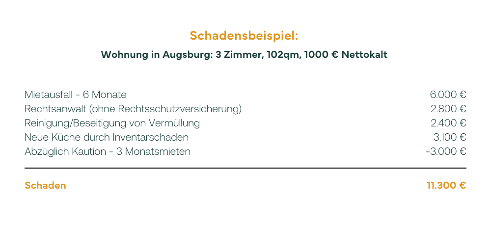 Es kommt leider schneller zu Mietausfällen oder Schäden, als die meisten Vermieter denken. Scheidung, Jobverlust oder Krankheit können dazu führen, dass selbst der vorbildlichste Mieter ganz ohne böse Absicht seine Miete nicht mehr zahlen kann.